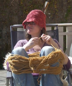 I det delige vårværet denne maifridagen har vi virkelig nytt å sitte ute med litt håndarbeid.