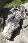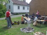 I dag var siste dagen på bronsestøpingskurset, og nå var det vi selv som skulle støpe. Vi ble delt i flere lag, der den ene skulle passe bålet der formene ble brent, samt finne frem form til støperen da bronsen ble flytende, den andre skulle betjene blåsebelgene, og den tredje skulle støpe. Alle fikk prøve alt, deretter var det neste gruppe sin tur. De store høydepunktene var da bronsen ble helt i formene, og spesielt da formene ble knust og resultatene åpenbarte seg. Nedenfor er det noen bilder av både støpingen og selvfølgelig av det som ble støpt. Mange takk til Ken Ravn Hedegaard for et flott kurs, til værgudene for nydelig helgvær, og ikke minst til Stein som fikk det hele i stand!