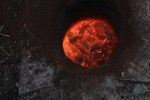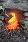 En propp sto igjen mellom øvre og nedre del av ovnen, denne ble staket ut med jernstenger. Her er det høye temperaturer og virkelig action