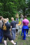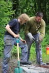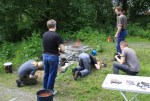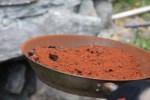 Ovnen renskes ut for å få ut alt. Vi venter spent på å høre resultatet etter at det hele er kjølt ned og rensket. Det ble litt jern i dag også, men fremdeles er det en del ting som må læres og ovnen må utbedres.