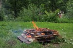 Myrmalm røstes, dvs jernholdig myrjord tørkes i bål