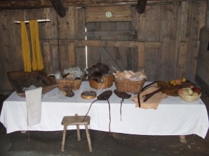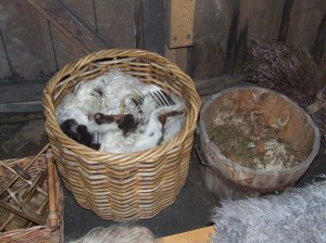 De besøkende fikk ta del i ulike aktiviteter. Her ligger spinneutstyret. Merk ullkammene. Man hadde jo ikke karder i folkevandringstiden.