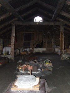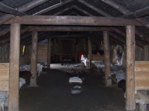 Interiøret i det andre langhuset. Man tenker jo litt på hvordan det ville vært å overnatte her...