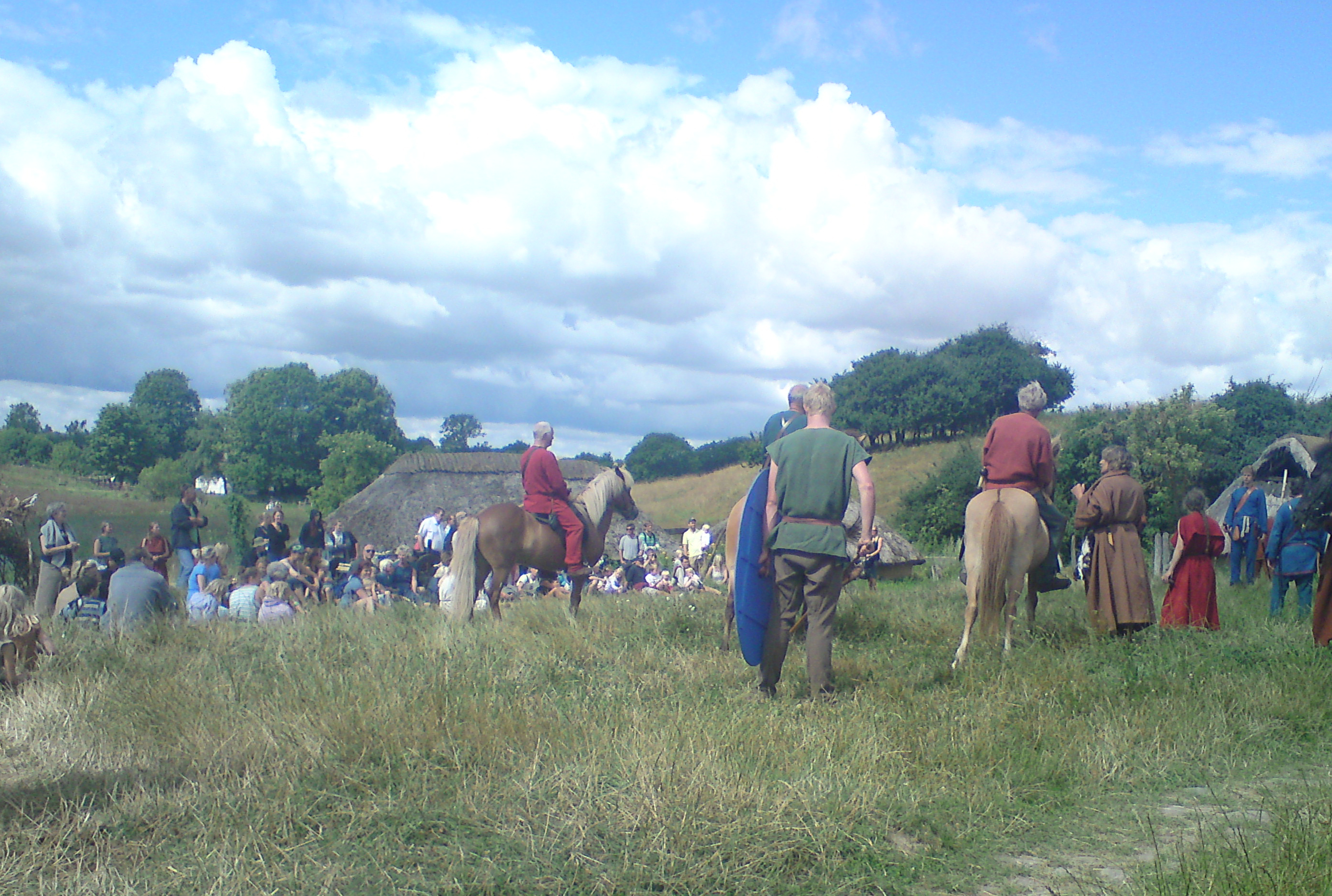 Vi har støtt på Prindsens Hverving to ganger i Sagnlandet Lejre, i fjor da de feiret 2000-årsjubileet for Varusslaget (Kalkriese/Teutobergerskogen), og i år da temaet var stammekrig i jernalderen. Årets plot: En gjeng omstreifende krigere inntok landsbyen, og gjorde krav på gård og grunn, drepte høvdingens sønn (som ble behørig kremert), og bortførte datteren. Slikt blir det konflikt av. Dessverre hadde vi det for travelt til å få med oss hvordan det gikk. Jernalderlandsbyen var åsted for en del av forestillingen, men fortidsfamiliene var ikke involvert.