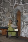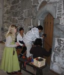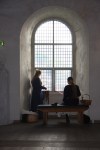Så var nok et arrangement overstått, og en dag i middelalderen over. På grunn av de dystre værutsiktene hadde de funnet på en plan B, nemlig å plassere oss som drev med husflid innendørs i Rosenkrantztårnet. Lena nålebandt, Oline slendret eller fingervevet og i tillegg til oss, var det en som brikkevevde. I etasjen under var det to også to til som gjorde forskjelling håndverk.