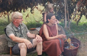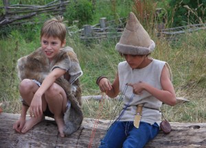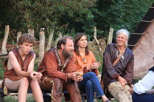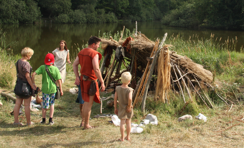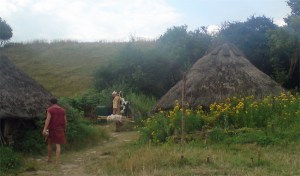 Det var Steinalderfestival i Lejre den uken fortidsfamilen vår reiste til jernalderen. Andre fortidsfamilier reiste og bodde og levde i steinalderen. Vi snek oss ned på et tidspunkt da det var lite publikum i jernalderlandsbyen. Det var artig å komme ned dit og se hvordan de hadde det. Det var langt mer kummerlig når det gjaldt overnatting, og matutvalget var visst en del annerledes enn i jernalderen.