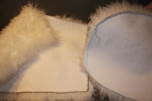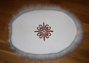 Av ett lite saueskinn ble det ett firkantet og ett ovalt underlag