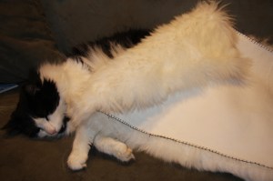 Pus er ofte med i håndarbeidsprosjektene våre. Som katter flest har han en tendens til å legge seg oppå og oppi prosjekter.