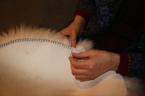 Vi har skaffet oss en hel rekke saueskinn og er i gang med hvert vårt prosjekt.