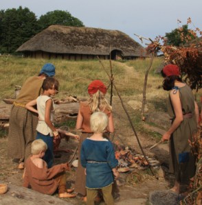 Vi har lenge hatt lyst til å prøve oss på den eldgamle tekstilteknikken sprang. Da vi var jernalderfamilie i Lejre i sommer, brukte både Lena og Oline og hårnett i sprang. Man blir slått av hvor vellykket historiske drakter blir når man får et tidsriktig hodeplagg – selve prikken over i´en kanskje?