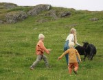 Det var veldig kjekt at de hadde sauer på Ullandhaug, det gjorde det enda mere spennende. Malvin, Sigvald og jeg fikk tak i noe korn eller lignende (ganske ofte) som vi kunne gi til sauene, de spiste alt vi ga dem rett fra hånden, men det var ikke alltid sauene turde å komme bort, og vi måtte komme tilbake med hendene fulle av korn (og andre ting).