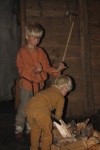 Fortidsfamilien består av mor, far og tre barn, Oline på 12 og guttene Malvin og Sigvald på 7 og 4 år. Det er oftest syslene til oss voksne og Oline som blir skildret her på bloggen, men hva guttene gjør på (og ikke gjør på) har også stor betydning for prosjektene våre. De to små, viltre guttene er viktige miljøfaktorer. Som oftest på museer består bemanningen av voksne. Med barn på jernaldergården ble fremstillingen av forhistorien mer helhetlig. Dette er et av de sentrale poengene med konseptet fortidsfamilier. Ideelt sett skulle det jo også ha vært en tredje generasjon til stede, med eldre mennesker for å gi et enda «riktigere» bilde av den forhistoriske befolkningen.