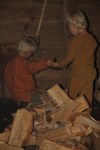 Vedbæring var også en grei oppgave for guttene, og de hjalp flittig til med å hente frem ved til ildestdet dersom de var innendørs. Malvin tok også oppgaven veldig seriøst da vi ba ham om å ordne litt i vedstabelen. Han fikk med seg Sigvald, og gikk i gang med å omrokkerte hele stabelen og stable den fint opp på nytt. De var kjempestolte!