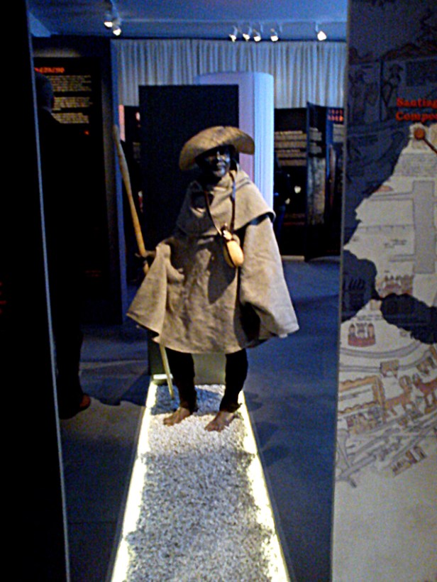 Så er utstillingen åpnet, og våre pilegrimsklær er kommet til sin rett på en pilegrimsfarer. Klærne er tatt på en vandrer og antrekket er komplettert. Det har vært lang vei å gå og skoene er utslitt, men bare føtter er herdet etter lang tid på vandring. På beina er det kommet fotviklinger, og for å beskytte ansikt og hode mot solen har han fått en bredbremmet stråhatt. Museet har selv sørget for at han har fått en vannflaske for å slukke tørsten. Både hatt og kappe har fått pilegrimsmerker for å vise hvor turen har gått. I hånden er riktig flott pilegrimsstav.
