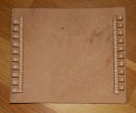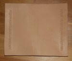 The original Hvidegården-pouch has no seam in the bottom (compare with previous attempts earlier in the blog: 1, 2). Most of the poch is made in one piece, the upper part with the horizontal decor included. The loops on the inside are sewn on with whip stitches, which also go through to the outside. The end terminals of the pouch are not preserved. Here it is open to multiple possibilities. Either the bag has been made from one single piece with a baggy shape, for example the skin by a knee joint, or it has had separate side panels stitched on. Espen went for the latter solution. The shoulder bag from Vesterris, which is slightly younger (ca 400s BC), but with the same zipper patent, have side panels, which provide a nice rounded bottom. It is quite likely that Hvidegården-pouch had such side pieces, and in any case, the solution is obtained from a bag with the same closure.