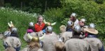 Espen hadde et jobboppdrag for museet denne helgen, omvisning for en blåturgruppe. Det vakte stor oppsikt og munterhet da Espen førte frem sin «vikinghær» med stiresekker og plasthjelmer.