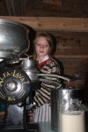 Det er populært å komme opp i selet der melken håndteres. Malvin er spesielt begeistret for melkeskummet som kommer fra seperatoren, en Alfa Laval fra 1929. Da denne ble produsert hadde de man ennå ikke funnet opp den lufttette sentrifugen, som medfører mengder av luftbobler i melken. Dette er det deiligste melkeskum man kan tenke seg – som varm is! Espen har hatt oppgaven med å sveive separatoren i mange år – en virkelig tung og slitsom oppgave. Denne gangen var det i perioder skrint med folk på grunn av dårlig vær, og Lena benyttet anledningen til å få forsøke seg på ting som hun bare har sett blitt gjort tidligere, å helle i nymelket melk fra det store melkespannet og over i seperatoren, og deretter få fart på sveiven – en styrkeprøve. Fordi vi gjør dette som en demonstrasjon for publikum, heller vi bare noen få liter melk i seperatoren av gangen, og starter deretter opp fra null hver eneste gang. I gamle dager helte de selvsagt hele melkeproduksjonen igjennom straks seperatoren kom opp i fart, og svinghjulet gjorde mesteparten av jobben.
