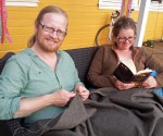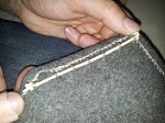 Selv om denne typen kapper er enkle plagg, uten store utfordringer, så er de likevel veldig omfangsrike. Lørdag kveld og en god del av søndagen gikk med til å kante den. Det blir noen meter med søm av noe slikt, og alt er gjort for hånd, slik Espen foretrekker. Bitene som er til overs blir nok til en struthette og en hatt eller to i løpet av høsten eller vinteren.