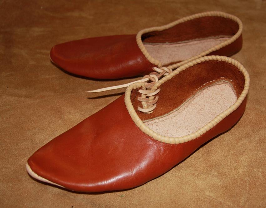 I den kommende skoutstillingen på Bryggens Museum skal man kunne prøve ulike typer sko i en «skobutikk», både middelalderske og moderne. Espen skal lage en del av middelaldervariantene. Først ut et par lave sko med sidesnøring fra 1200-tallet, basert på et funn fra Bryggen i Bergen. Nå som prototypen er testet, skal disse produseres i flere ulike størrelser i løpet av de nærmeste dagene. Espen regner med å få laget en god del sko nå i høstferien, og det blir nok noen poster i bloggen om dette fremover…