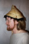 Sist helg laget Espen en kopi av Tollundmannens skinnlue. Den var i knappeste laget, så han bestemte seg for å lage en til, og bruke den første til skoleundervisningen på Hordamuseet. Nå er den nye versjonen klar, denne gangen også i litt tykkere saueskinn, med brun ull på innsiden. Også i dette tilfellet ble den laget av kapp fra et jernalderskinnslag Espen laget for et par år siden. Funnet er allerede omtalt i forrige post, så vi nøyer oss her med å vise bilder av den nye luen.