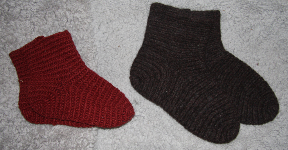 Selv om Espen har hatt større ting å jobbe med denne julen, og Lena har sydd tøyposer til alle gavene (vi holder oss stort sett unna gavepapir her i huset), har det også blitt tid til en del nålebinding i løpet av adventstiden og julen. Lena har laget flere luer, bl.a. til to voksne nevøer. Det er alt for få myke, selvlagete gaver under juletrærne fort tiden. Espen har som vanlig laget en god del par med votter og sokker, men ikke så mange som han pleier, på grunn av hetteslaget. Nå skal vottene og sokkene toves og pakkes ned for å selges på sommerens og høstens markeder. Det er viktig å starte tidlig om man skal ha tilstrekkelig mengde og stort nok utvalg.