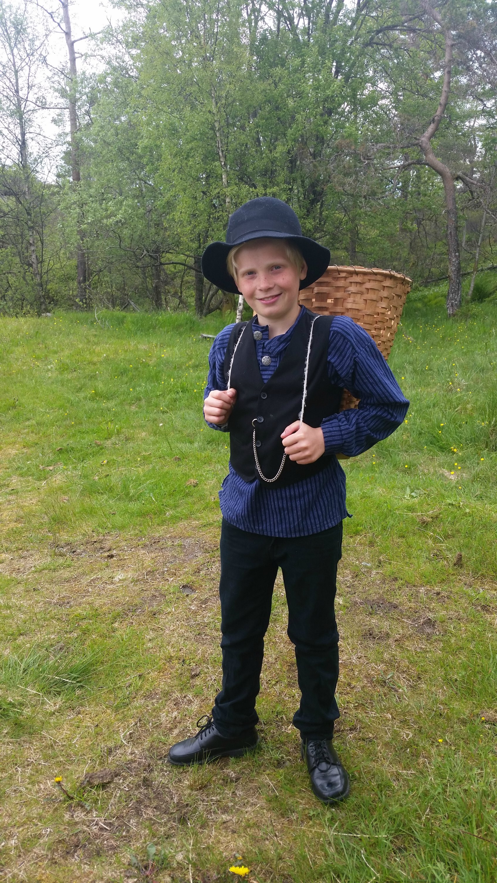 Malvin gikk ærend mellom de ulike stølshusene, og bar tingene med seg i kipen / Running errands between houses with his wooden rucksack
