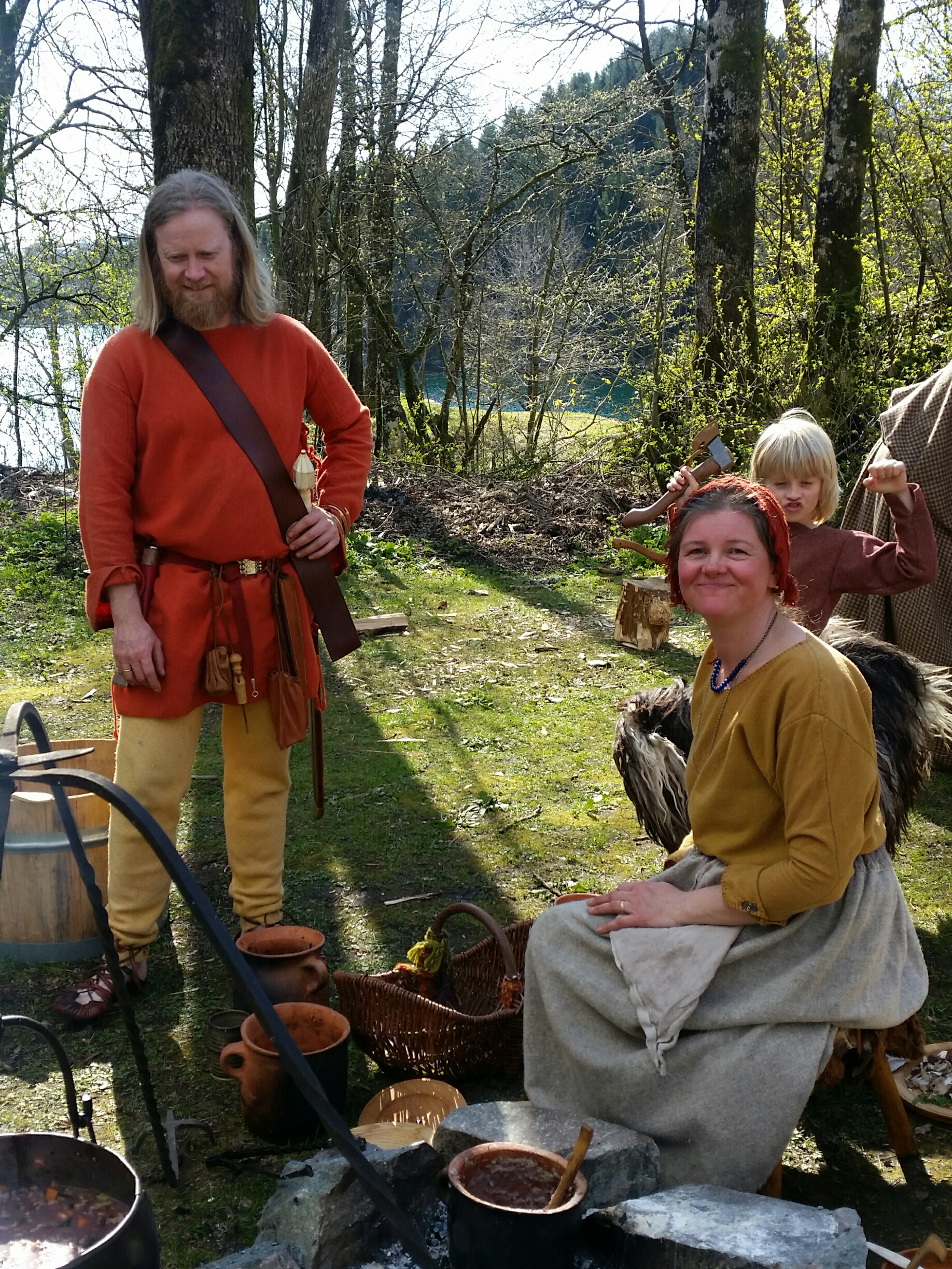 Det nærmer seg slutten av dagen, og den harde kjerne i Fortidsfamilien er med på bildet / Some family members around the camp fire