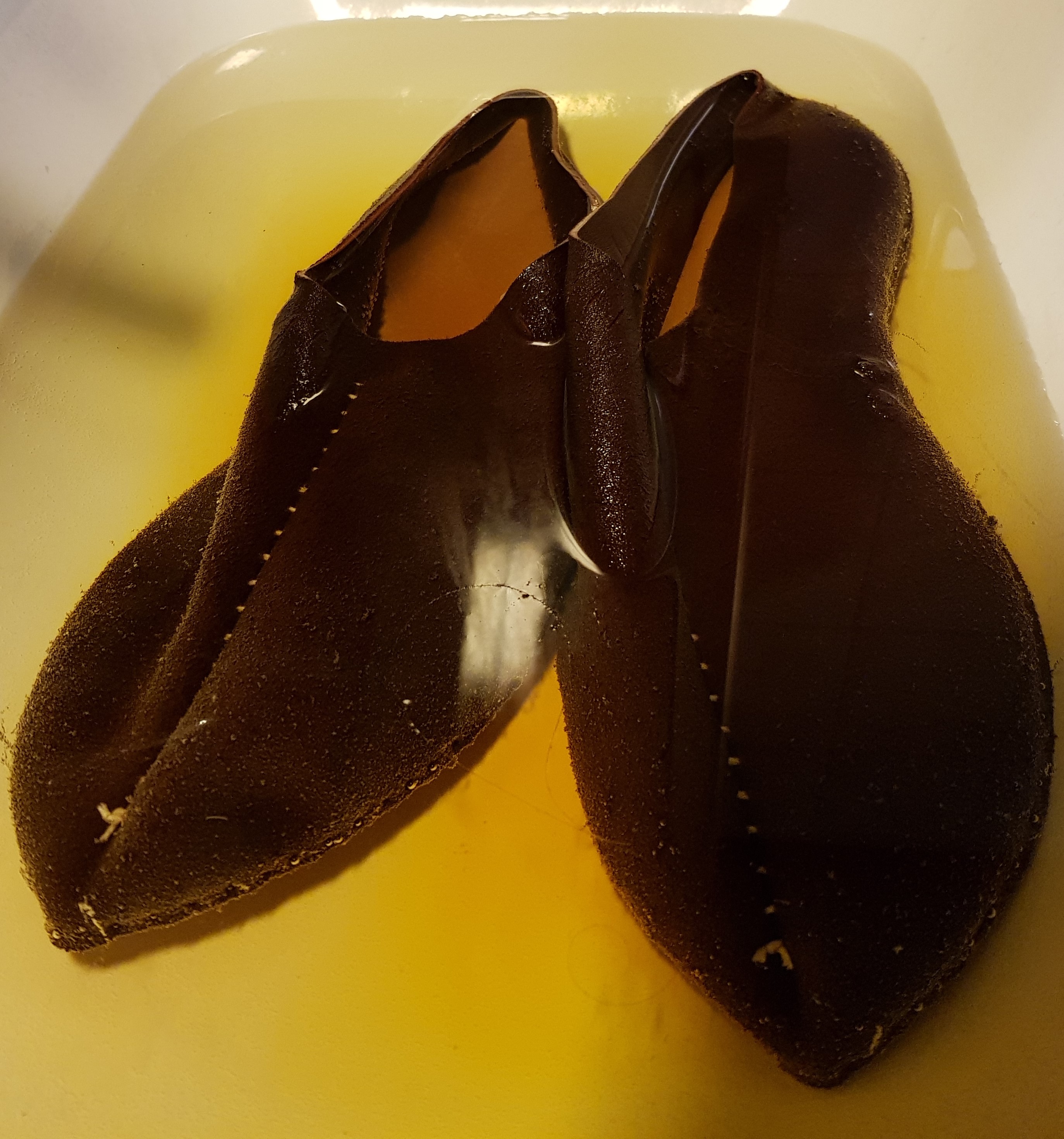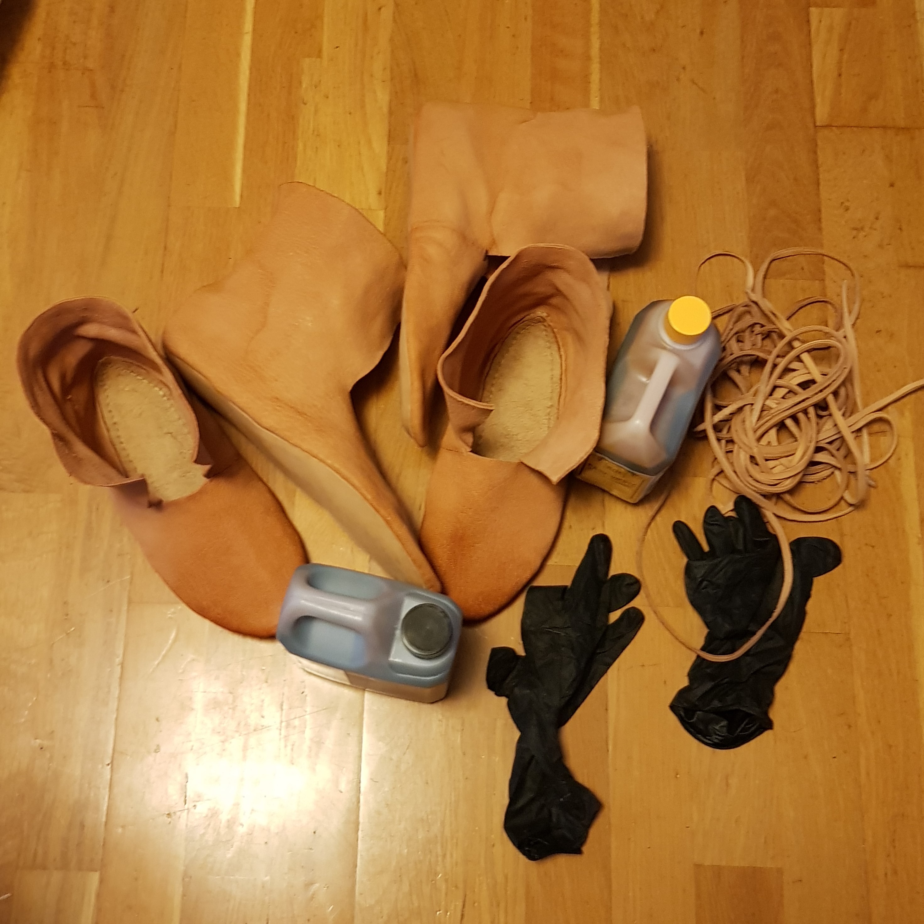 We have many pairs of shoes in stock, packed and ready for sale, but in addition, as always, we have a lot of unfinished shoes that needs to be dyed, trimmed, laced and greased. For some reason, the easiest parts of the job is often postponed such a long time that the tasks becomes a bit overwhelming. Of course, just to make sure to make the days before the market is even more stressfull, Espen intends to make several shoes in the days to come.