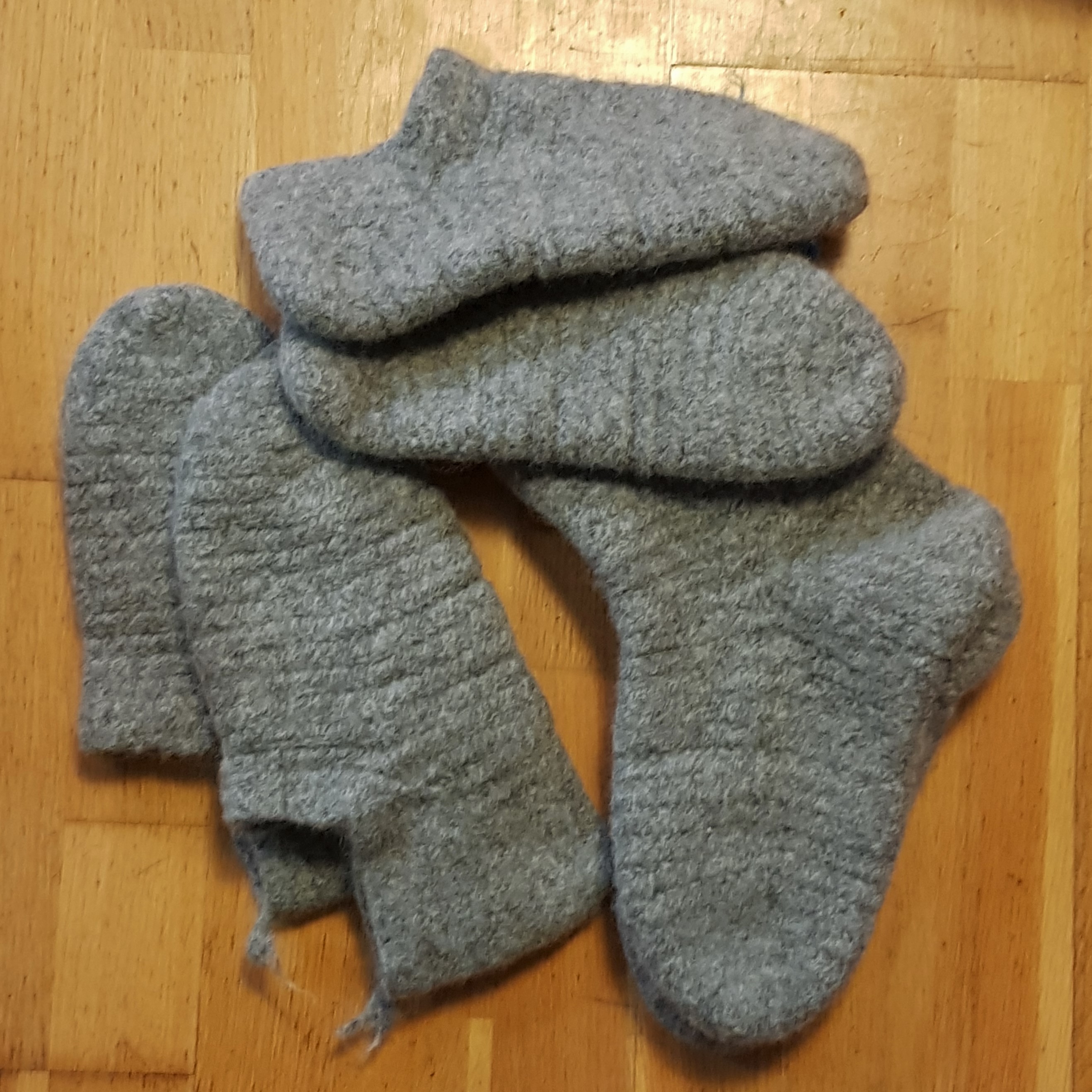 Det er også viktig å klargjøre emner og finne frem verktøy til å jobbe med, både til håndverksdemonstrasjon og publikumsaktivitet. I fjor kunne publikum lage sin egen skinnpung, og det var så vellykket at vi viderefører det i år også. Så er det nålebundne sokker som skal toves, men det er heldigvis ikke så slitsomt ettersom vaskemaskinen gjør jobben. Det skal bare huskes. Videre skal det finnes frem kjørler, leirutstyr, drakter mm. Vi kjenner at vi begynner å komme i stemning. Vi gleder oss!