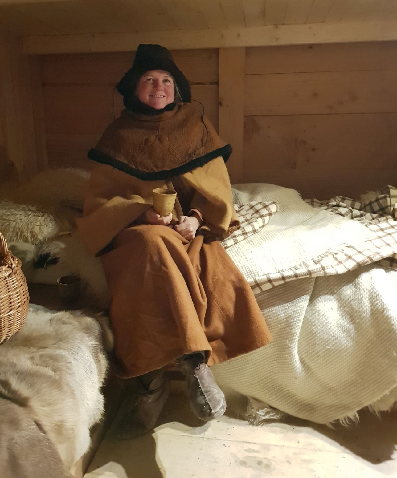 Of course, whenever we are in the Viking village, we also want to stay in the Viking houses, even when it is winter, and even if they are not heated. By wrapping ourselves in sheep furs and woolen blankets, we managed to a certain extent to keep warm through the night. In the middle of the first night, though, we woke up a bit could because some of the blankets and furs had ended up on the floor during the night.