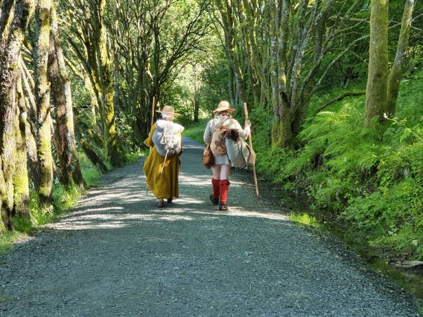 De som kjenner oss vet at vi aldri tar lett på bruken av korrekte sko til historiske drakter. Skoene er like viktige som resten av fremtoningen, og helt avgjørende for innlevelsen når man driver med levendegjøring av historien. Det er nå en gang slik at de som levde før oss klarte seg gjennom allslags strabaser i det fottøyet de faktisk hadde tilgjengelig. Vi ønsket å kjenne på kroppen hvordan en lengre tur kan ha artet seg, og da er fottøyet og komforten knyttet til dette helt avgjørende.
