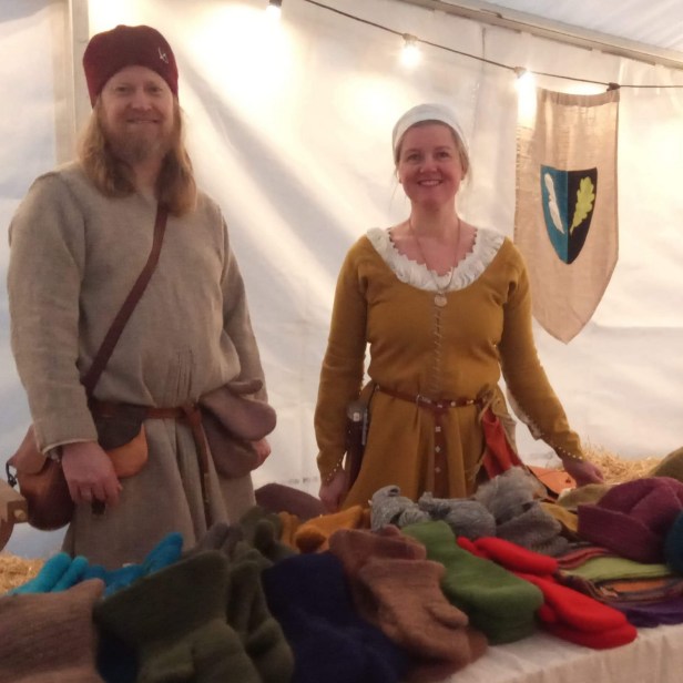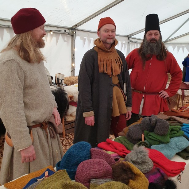 Even though we did not get to go to markets, we still had a number of larger and smaller assignments. In addition to the socks and some pairs of shoes for the film production mentioned above, we have made shoes for several museums and history centers during this year. It was especially fun to participate in the large costume project «Fashioning the Viking Age», for which Espen made several pairs of shoes for costume reconstructions, which eventually will end up in the new Viking Age exhibition at the National Museum in Copenhagen. This Christmas, a new shoe project is in progress, also for a museum. As last year, we have made traditional Christmas Meal from Norwegian «wild» sheep, both from Christmas and New Year’s Eve. Otherwise, we have had many other projects, visited herritage monuments and have hunted second hand and antique shops for treasures. Not everything finds its way to our blog, but much is posted continuously on Instagram @fortidsfamilien. By the way, right before Cristmas most of our needle-binding products found their way to Bryggens Museum’s shop, more or less ending us up where we begun the year.