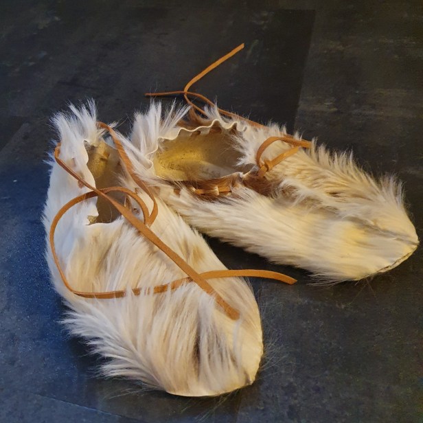 Selv om vi ikke fikk dratt på markeder hadde vi likevel en del større og mindre oppdrag. Utenom sokkene og noen par med sko til filmproduksjonen som er nevnt over, har vi laget sko til flere museer og historiesentre. Særlig var det artig å delta i det store draktprosjektet «Velklædt i vikingetiden», der Espens laget flere par med sko til draktrekonstruksjoner, som ender opp i den nye vikingtidsutstillingen på Nationalmuseet i København. Nå i romjulen er det nye skoprosjekt på gang, også denne gangen for et museum. I år igjen har laget fenalår og pinnekjøtt av villsau, sistnevnte som mat på jule- og nyttårsaften. Ellers har vi hatt mange andre prosjekter, besøkt kulturminner og funnet mange artige gamle ting. Ikke alt finner veien her, men mye blir postet fortløpende på Instagram @fortidsfamilien. Rett før jul havnet forresten mesteparten av nålebindingen vår i museumsbutikken til Bryggens Museum. Året startet som det begynte.