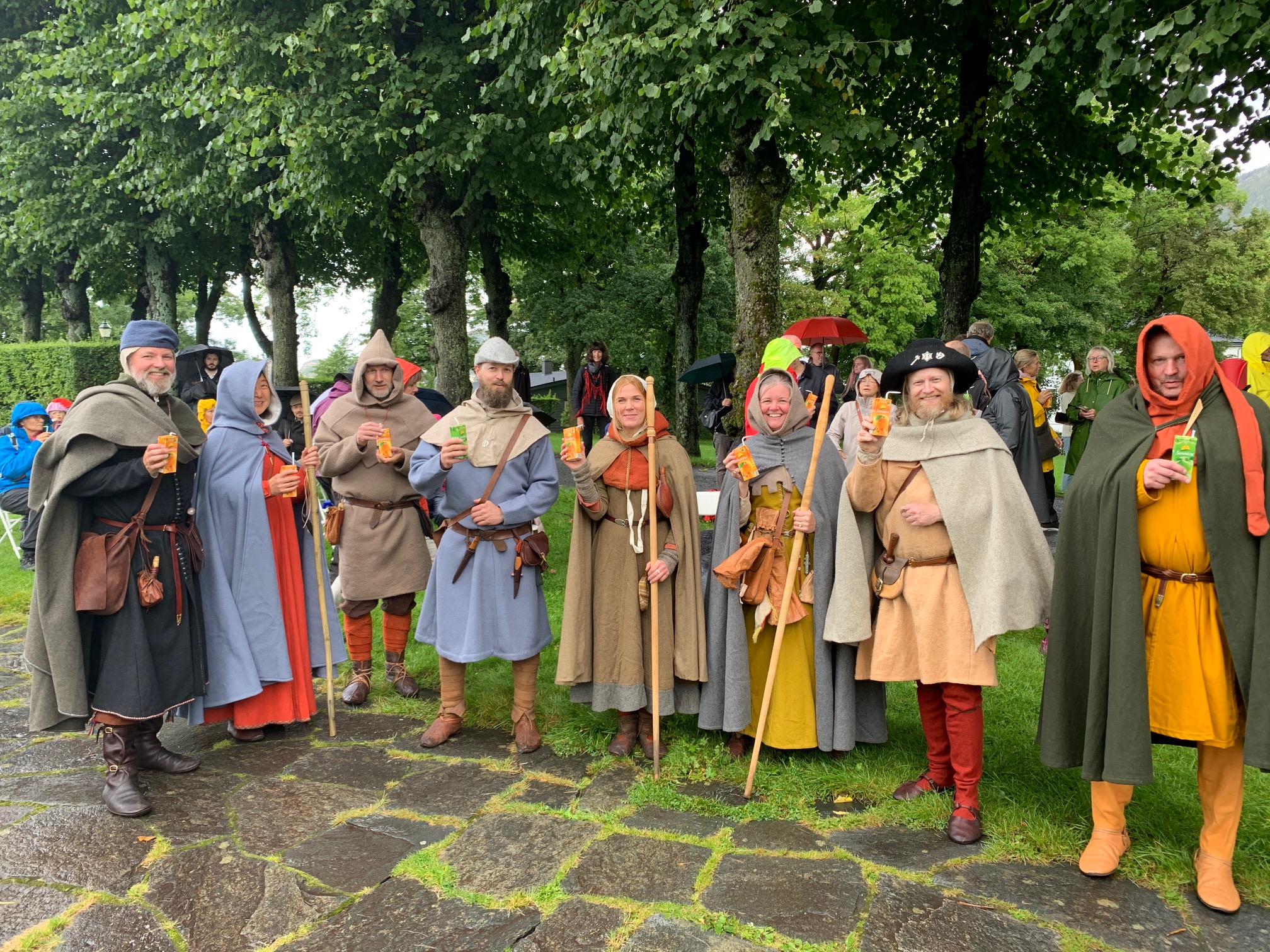 We really miss the weekly gatherings of Bjørgvin Handverkslag. In the spring, we only had very few meetings, some of them digital, as well as the small, corona-friendly party mentioned above. We had a joint costume project, a volva (norse sorceress) equipment for an external client, but the event the costume was intended for was canceled, like most other happenings. In late summer, when the corona infection level had dropped a bit, parts of Bjørgvin Handverkslag met a few times. A definite highlight was when several of us attended the opening of the regional pilgrimage center for The Coastal Pilgrimage Trail, where we got to carry the St. Sunniva Shrine (she was the patron saint of Bergen, and the second most important saint in Norway after St. Olav) from Torget to the ruins of the old medieval cathedral of Bergen at Bergenhus castle.