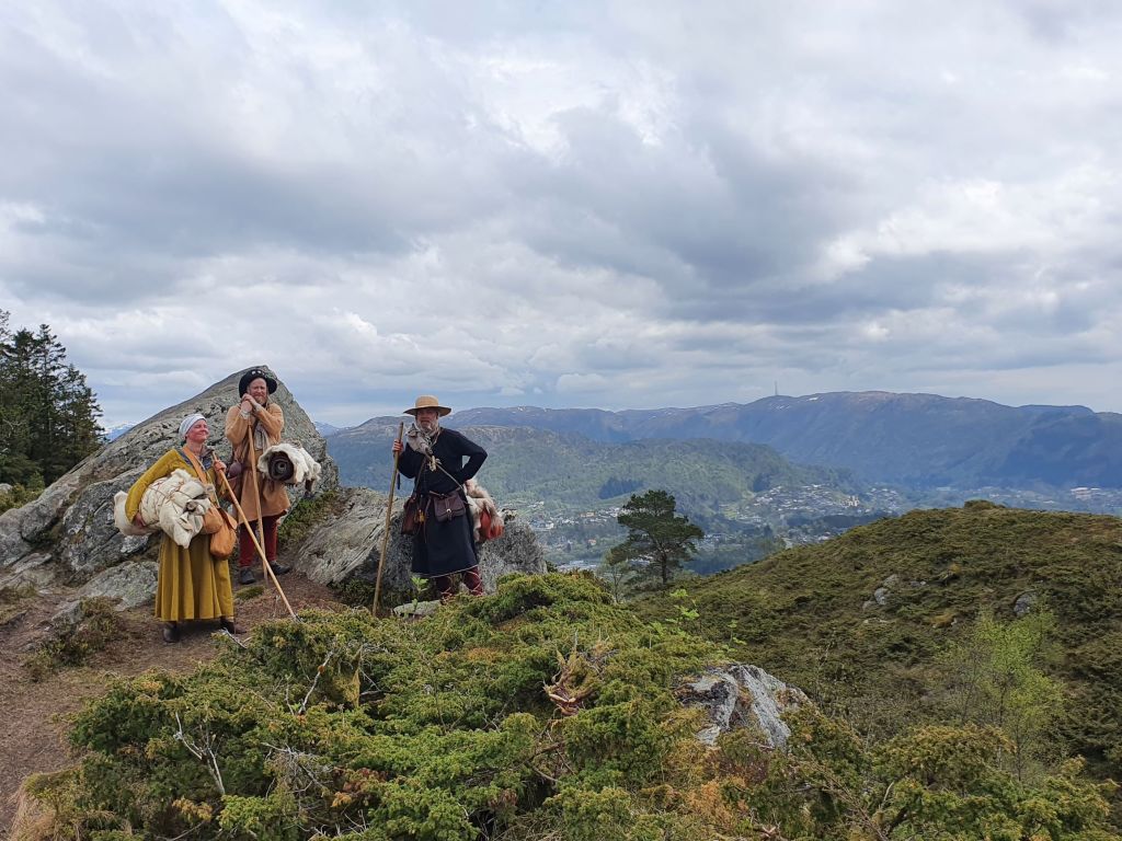 On the initiative from The Company of Saynt George, we embarked on an international, decentralized, historic pilgrimage to celebrate the feast of Sta. Corona. We had plans for something like this anyway, like in 2019, but it is much nicer to be part of something bigger. Together with our good friend Stig we went on a two-day pilgrimage 14th-15th of May in mountains around Bergen. Our end point was Bergenhus Fortress, where Sta. Sunniva’s casket once stood, behind the high altar in the lost Medieval cathedral of Bergen.