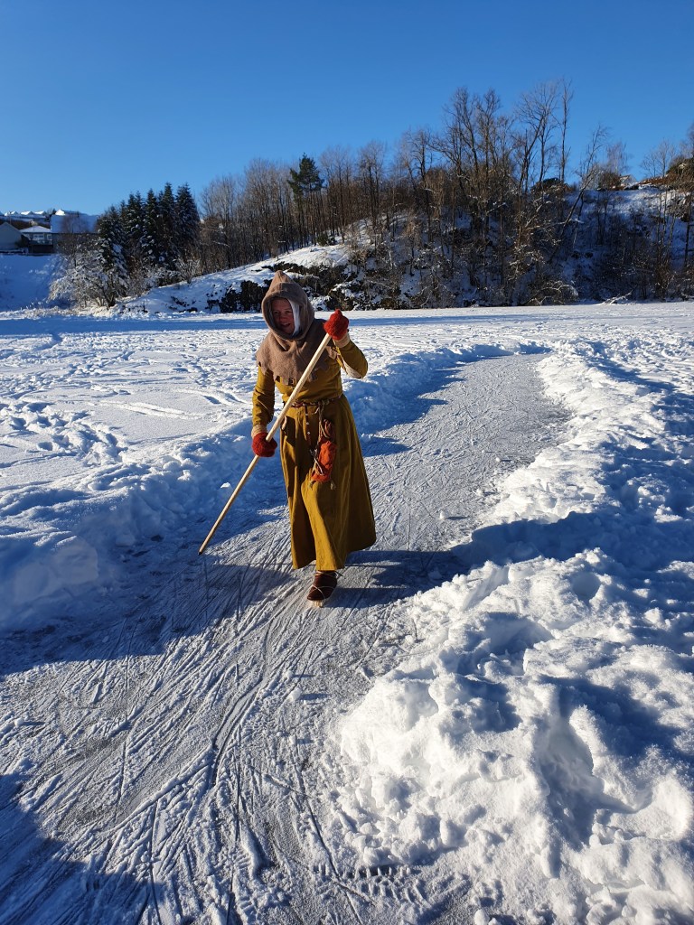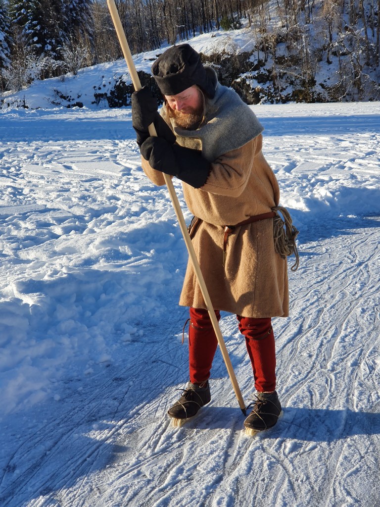 I februar lekte oss med islegger både på et tjern i nabolaget og på Fanafjorden. Ikke først og fremst fordi vi trengte noe historisk å gjøre, men fordi det for en gangs skyld var farbar is på både ferskvann og fjorden. Isleggene og stavene har vi hatt liggende i årevis i påvente. Kjempegøy, men neppe noe vi kan regne med å få gjort mye av fremover i vårt klima.