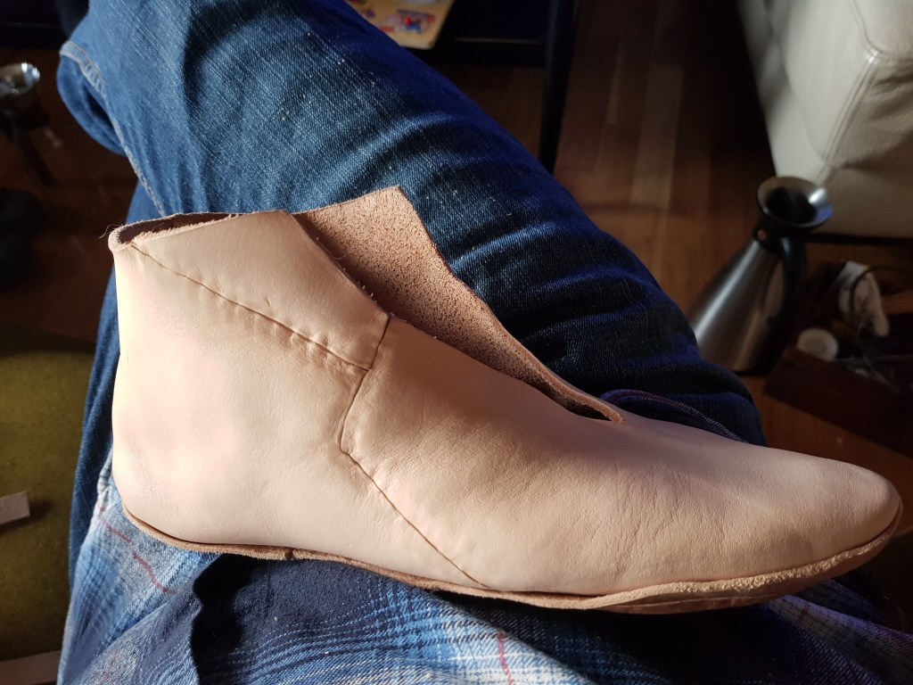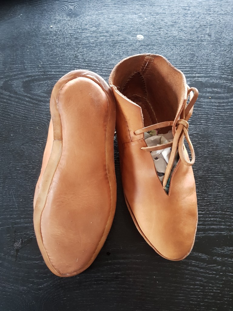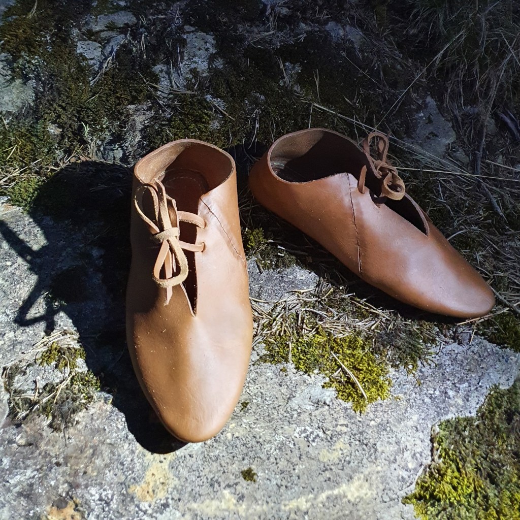 As usual, we have had done a number of assignments from museums and history centers, but slightly fewer than usual, because activity has been reduced most places. Reconstructing the shoes from the Lovund boat was probably the most interesting job this year. In 2017, archaeologists from the Norwegian Arctic University unearthed the wreck of a freighter that sank off the island of Lovund in Helgeland sometime in the second half of the 15th century. Remains of two almost completely intact late medieval shoes were found on board the boat. Work is underway to build a museum and create an exhibition, and Espen was given the exciting task of reconstructing and copying the shoes. The shoes do not form a pair, but Espen chose to make two whole pairs of each variant.