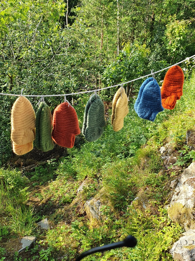 We have tidied and arranged a lot at home during the corona period. People like us tend to pile up things, which is especially true when it comes to yarn. Boxes, baskets, bags and sacks full of woolen yarn, usually leftovers (in our case, a leftover can be several skeins or balls of the same yarn), but also larger quantities that have been «forgotten». At Easter time we decided to use up most of the leftovers before we went to buy new yarn for knitting and needle-binding. It turned out we had so much in storage that we managed to keep going until the beginning of October before we had to buy new yarn.