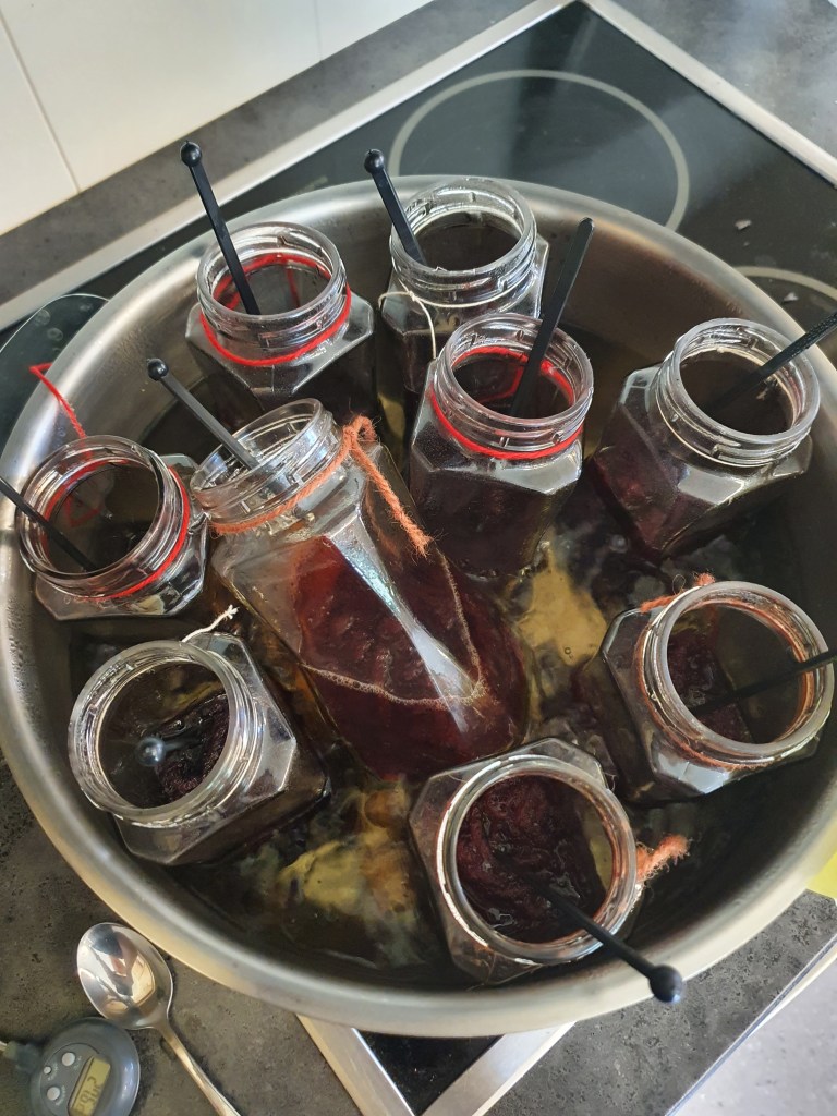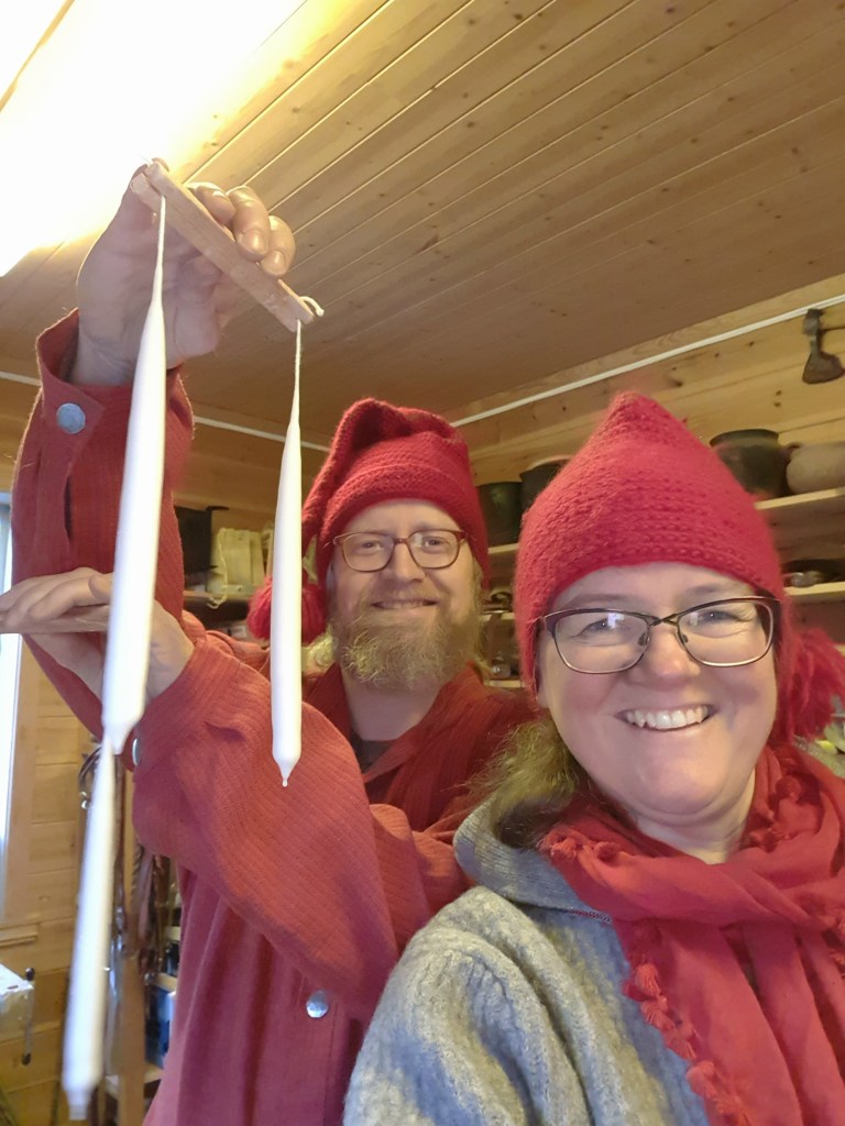 Ølbrygging har vi også gjort flere ganger gjennom året. Vi bare nyter å sette av en hel dag til bålkos, småprat og håndarbeid. I høst hadde vi oss en runde med brygging av vårt egne tradisjonelle juleløl, og helgen etter nok en brygging, denne gang i forbindelse med Hordamuseet sin Førjulsdag. Da drev Espen med lysdypping, slik han pleier.
