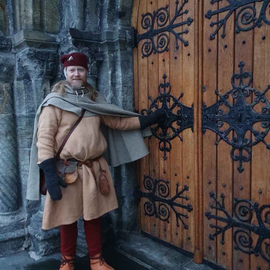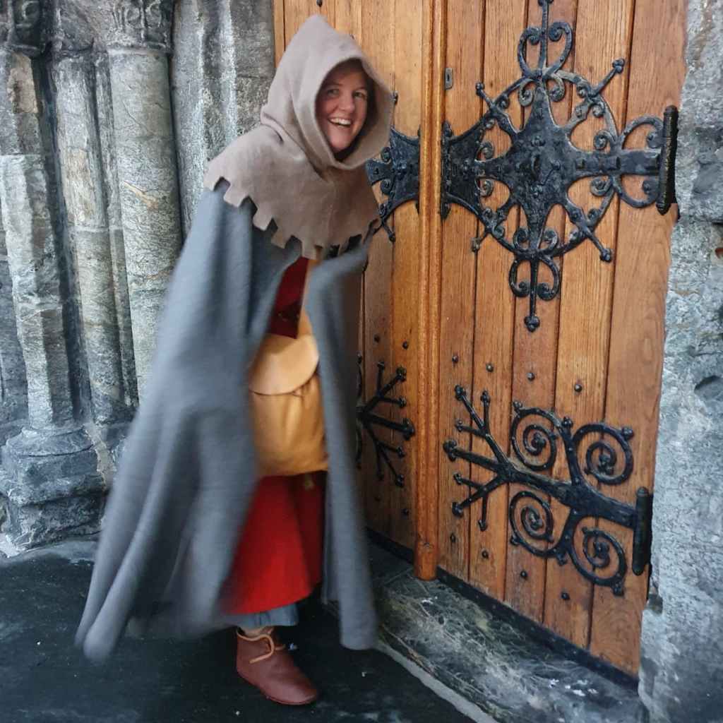 On Saturday December 4th, Bjørgvin Handverkslag was invited to hold a medieval workshop for families at Bryggens Museum, just before the corona virus turned our society dark red again. A small group from Bjørgvin Handverkslag helped a few visitors to make leather purses, ribbons and rune sticks. Afterwards, we strolled and posed a little along Bryggen (The German Wharf), before we dined at a restaurant with a historical theme.
