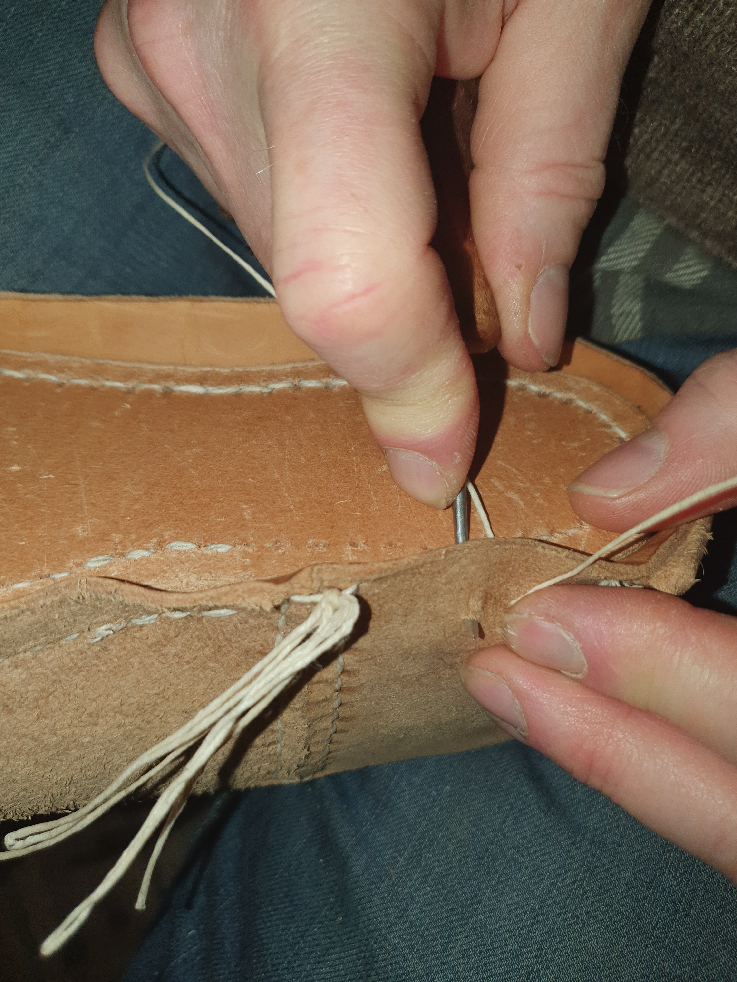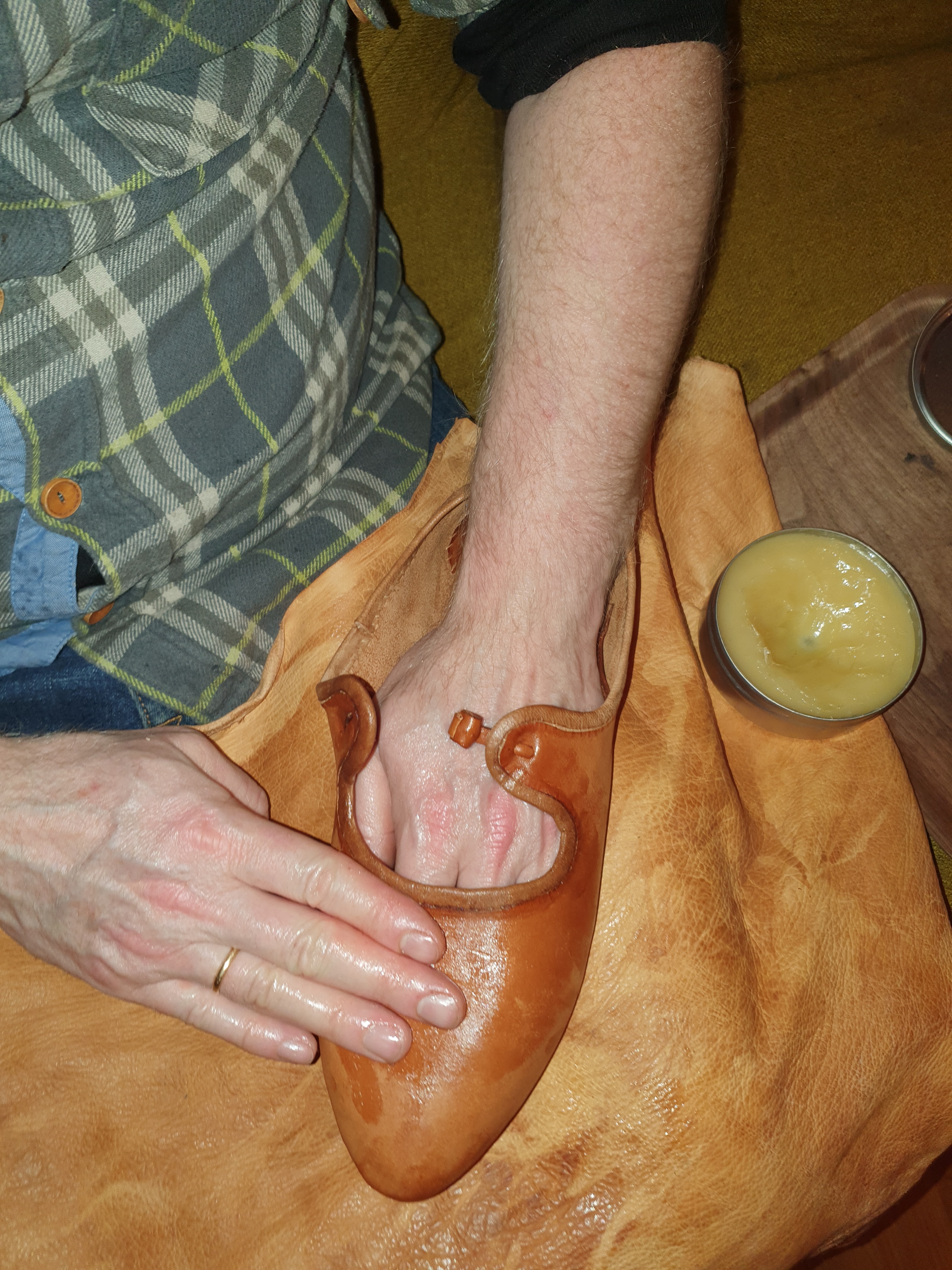 Espen will mainly demonstrate medieval shoemaking, and Lena will stitch bags and pouches in leather. Together with the other members of Bjørgvin Handverkslag, we will also invite the visitors to participate in different crafting activities. We will also bring medieval shoes for sale, some leather bags and needlebound socks and mittens.