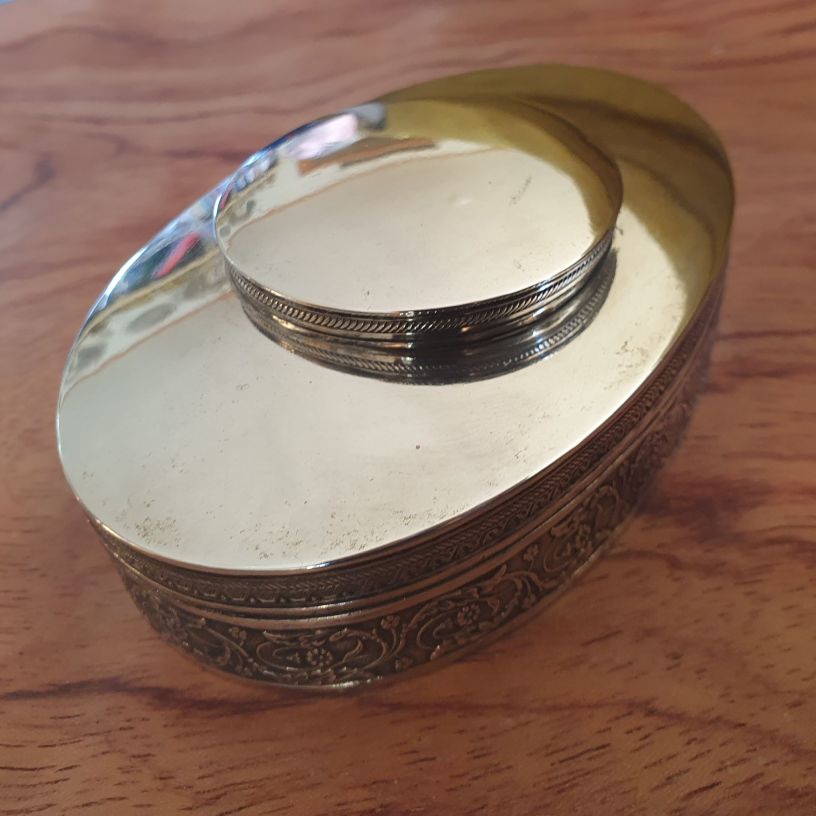 For noen år siden kom vi over en oval metalldåse på en Fretex-butikk i Bergen. Den var pen og finslig, med beskjeden, men rik dekor, bestående av blomsterranker og geometriske border. Prisen, som vi ikke skal gjengi her, antydet at Fretex anså boksen for å være både fin og attraktiv, men at man ikke hadde sett veldig nøye på den.