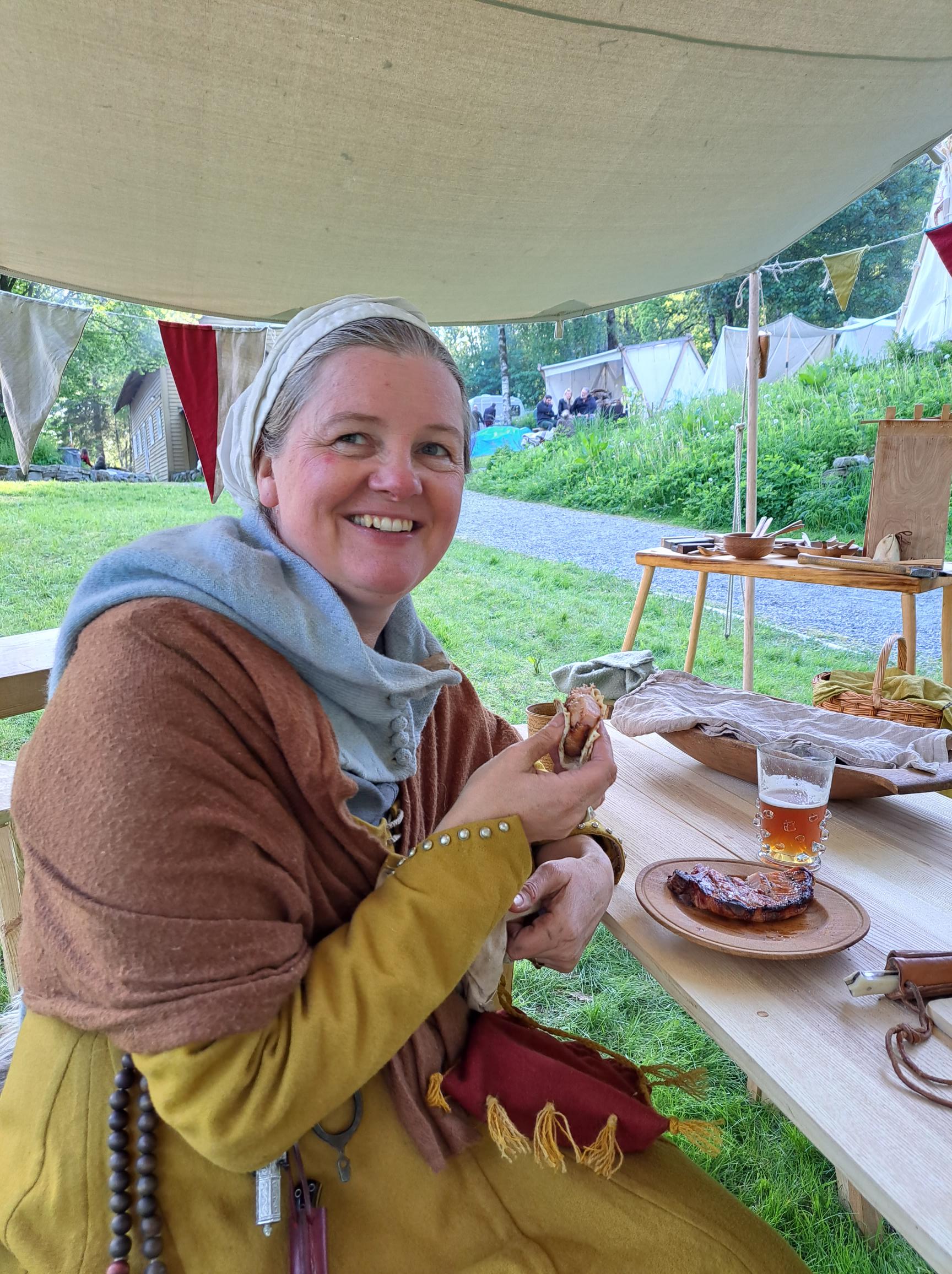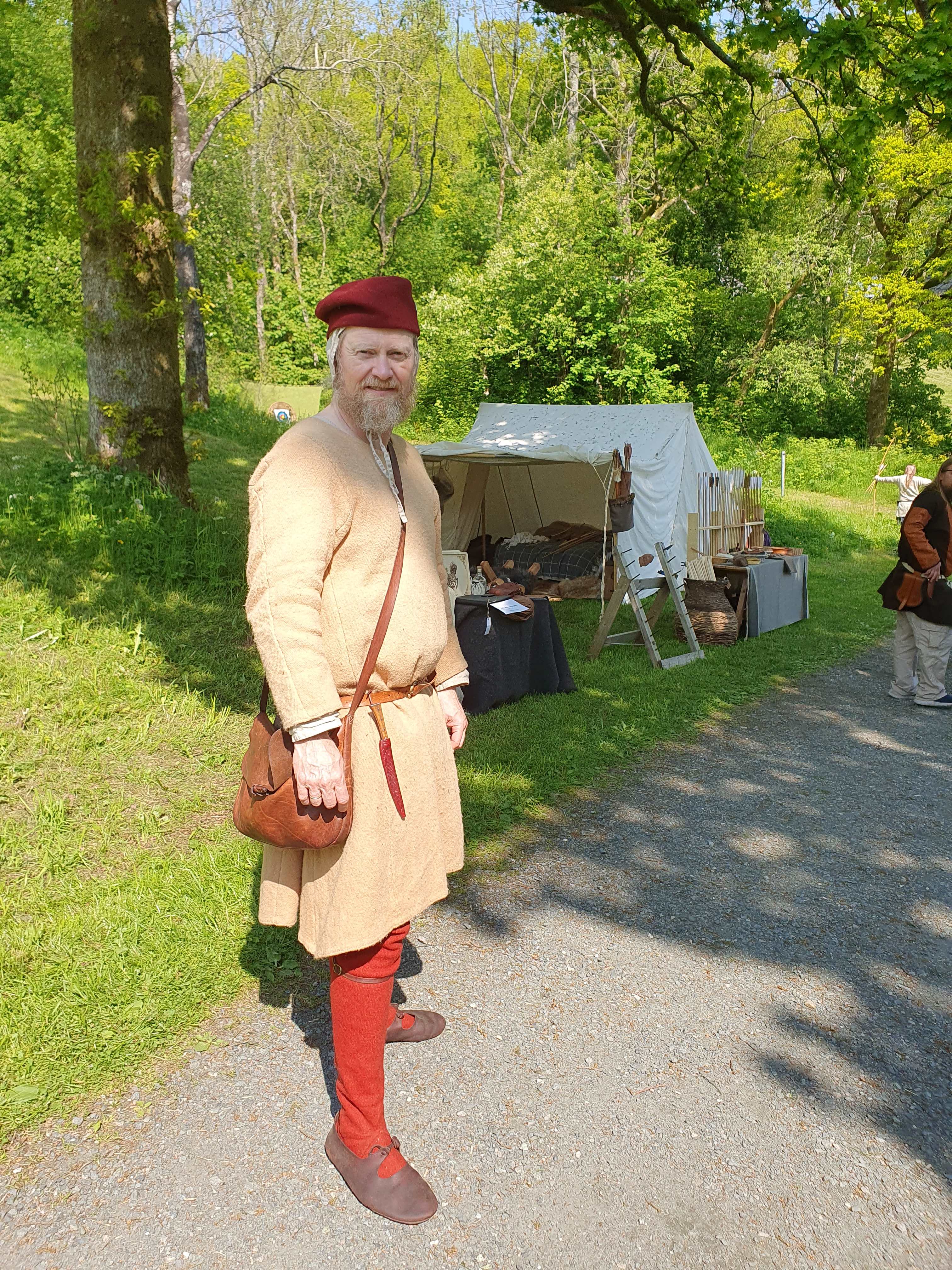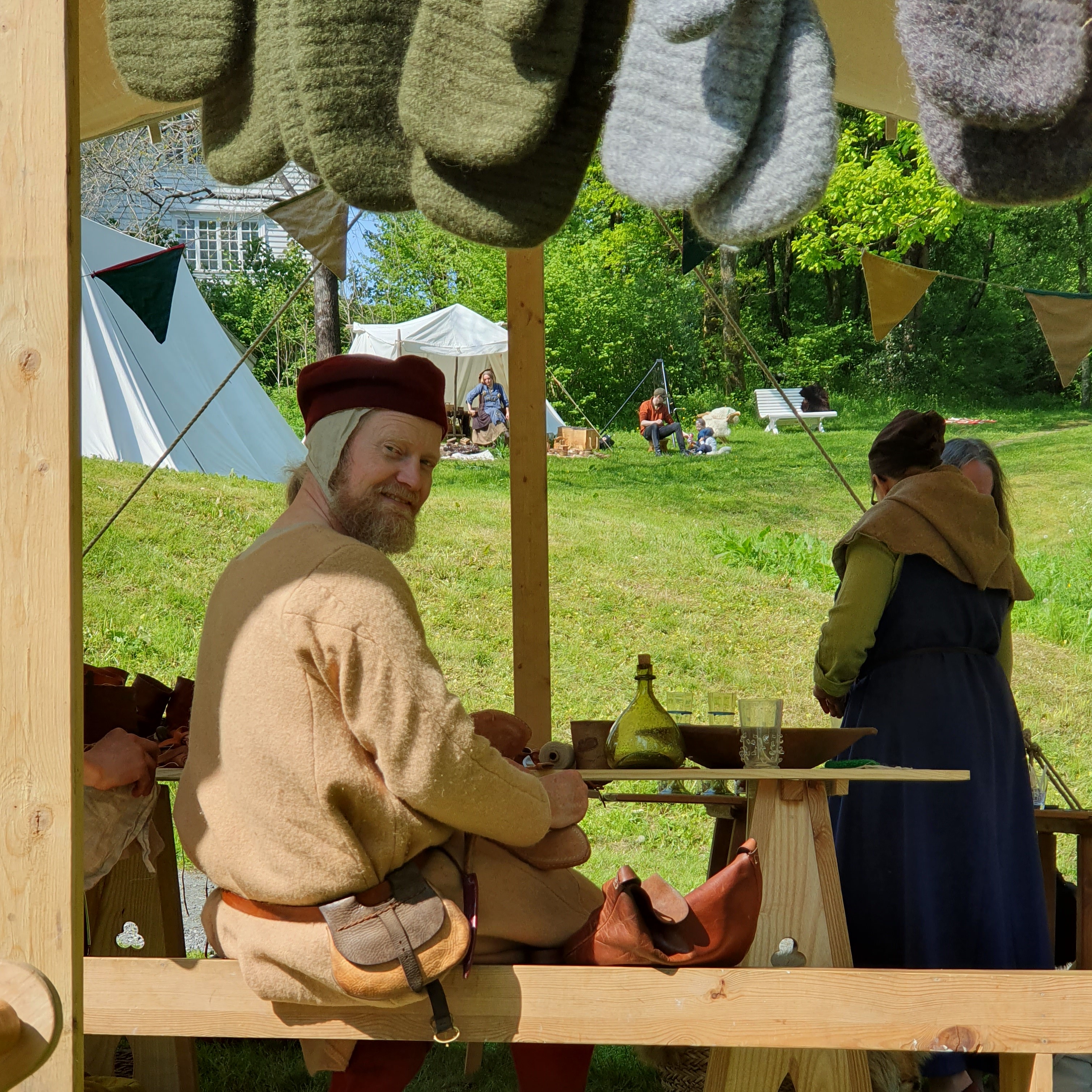 We camped in the same place we have used to camp for the last few years, in the shade of a large oak. The weather was glorious all weekend, so it was good to have some shelter from the sun. This time we were the only ones in Bjørgvin Handverkslag who camped here, but several of the others stopped by during the weekend, both at daytime and in the evening. The Bergen city museum also had a small pop-up museum shop under our tarp on Saturday, something to consider in the years to come as well.