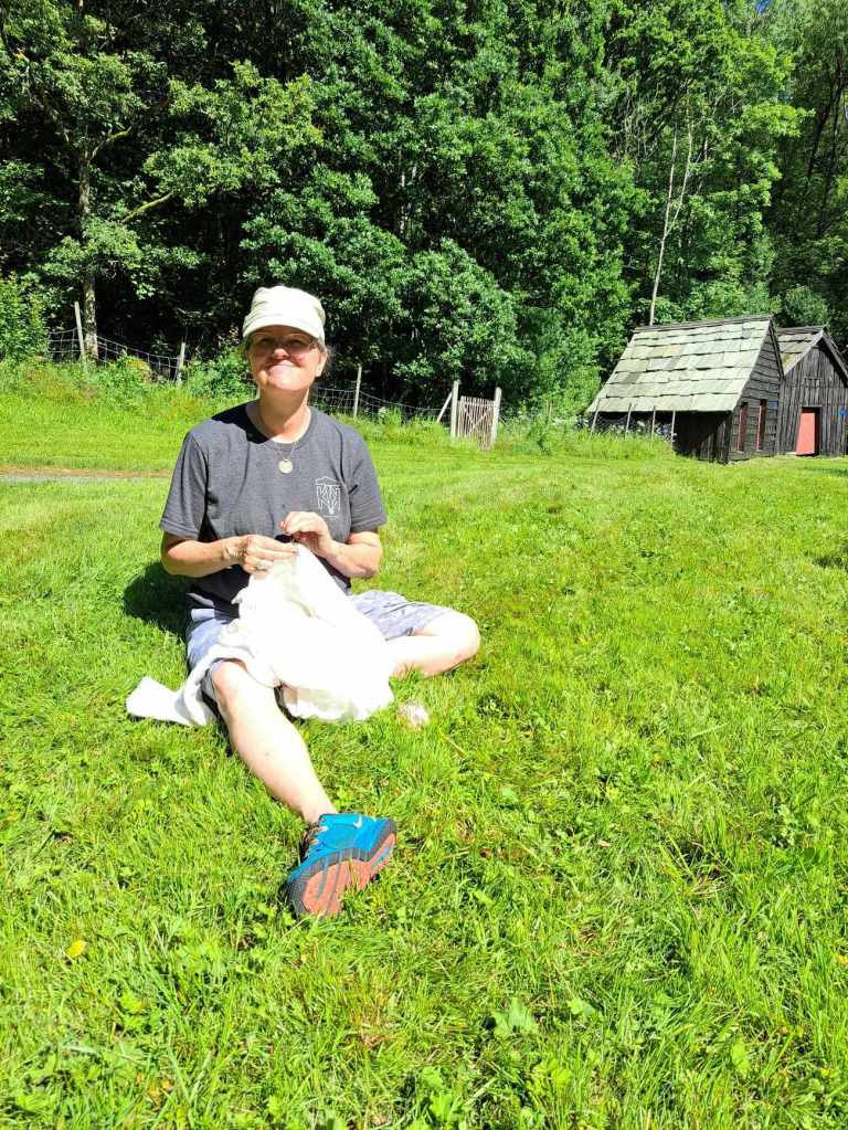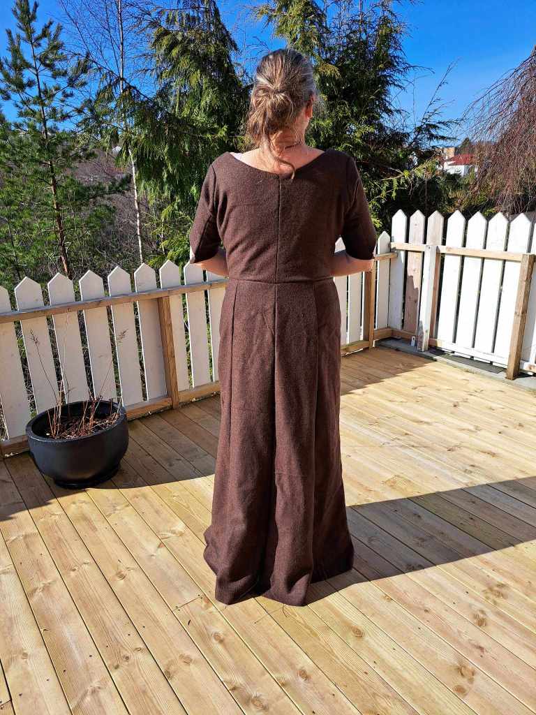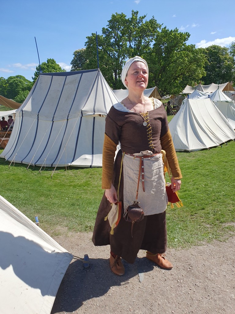 This summer, our time travel goes to the 1400s. Through friends we have become entangled in the small group of Tunsberghus 1470, and have been invited as guests to a week-long event organized by The Company of Saynte George at the Medieval Centre in Denmark, also set in the year 1470. Until now, we have – in the Middle Ages – prioritized the time until about 1350, where we can hop on and off at several stops with the time machine. After the Black Plague, however, fashion changed a lot. That means we had to start pretty much from scratch. Quite a lot of time has been spent making new clothes, in addition to busy jobs and preparations for the Oslo Medieval Festival and Bjørgvin Marknad. There has been some trial and error before we were satisfied with the patterns and fit, but we are gradually getting there. In Oslo we tested some of the 1400s clothes, even though the wardrobe was far from finished. Recently we have stepped up the sewing, and hope to finish most of what we had planned for before the deadline of July 20th.