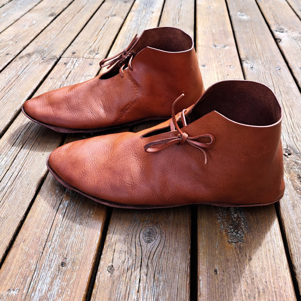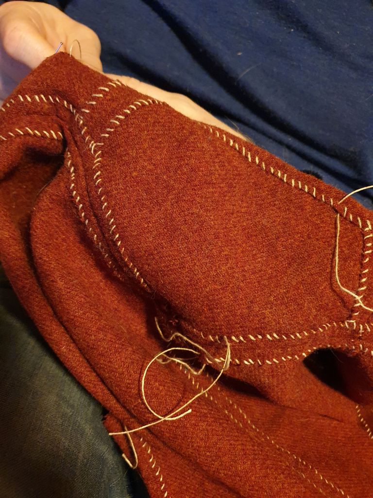Til nå har vi – innen middelalderen – prioritert tiden frem til ca. 1350, og kan gå av på flere stoppesteder med tidsmaskinen. Deretter endrer imidlertid klesmotene seg mye. Det betyr at vi måtte starte omtrent fra bunnen av. Det har gått med ikke så reint lite tid til å lage nye klær, ved siden av travle jobber og forberedelser til Oslo Middelalderfestival og Bjørgvin Marknad. Det har blitt en del prøving og feiling før vi var fornøyd med mønstre og passform, men det har kommet seg etter hvert. I Oslo fikk vi testet ut noen av 1400-tallsklærne, selv om garderoben var langt fra ferdig. Nå har vi trappet opp syingen, og håper å bli ferdig med det meste vi hadde planer om før deadline 20. juli.