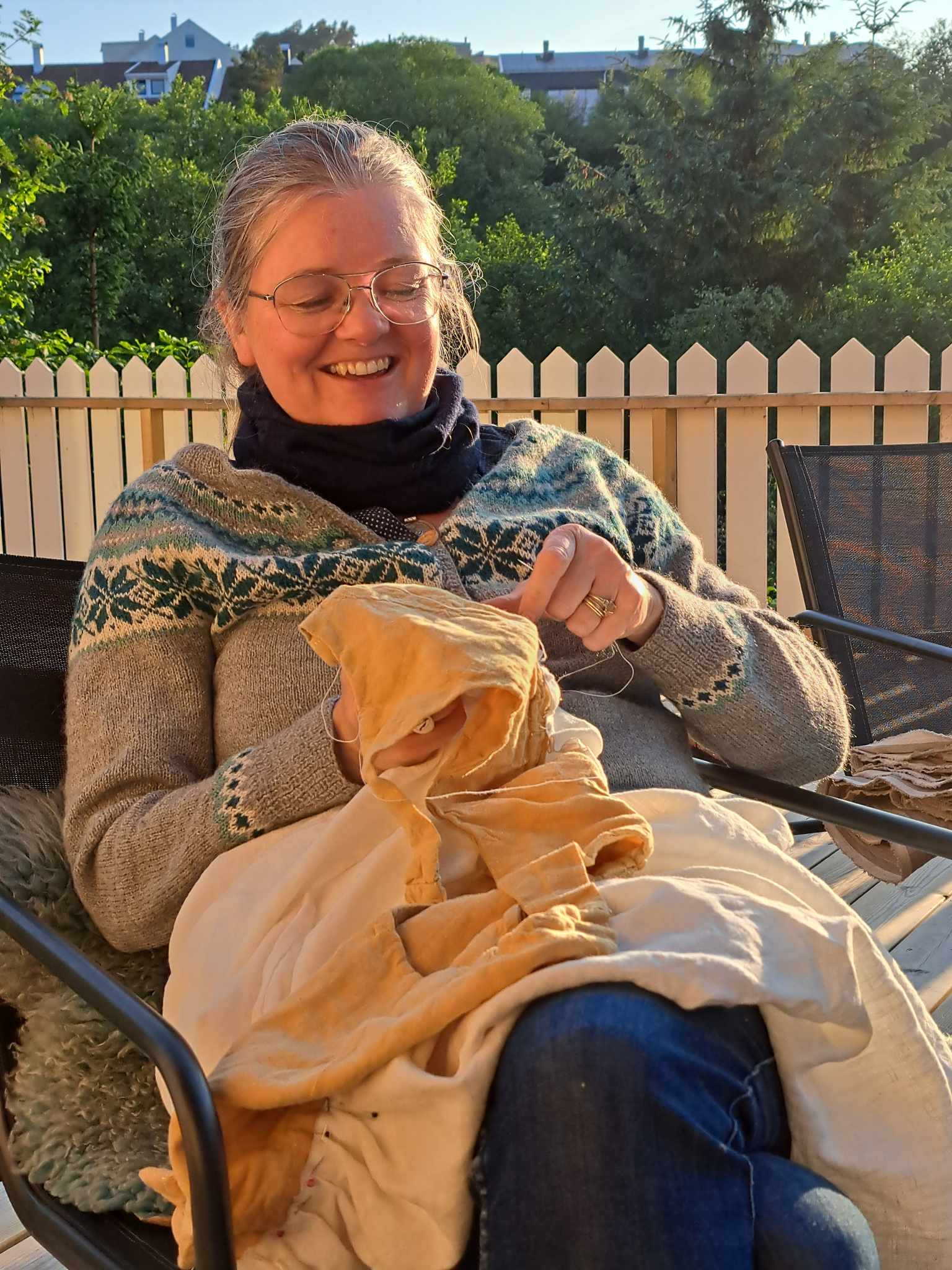 This summer, our time travel goes to the 1400s. Through friends we have become entangled in the small group of Tunsberghus 1470, and have been invited as guests to a week-long event organized by The Company of Saynte George at the Medieval Centre in Denmark, also set in the year 1470. Until now, we have – in the Middle Ages – prioritized the time until about 1350, where we can hop on and off at several stops with the time machine. After the Black Plague, however, fashion changed a lot. That means we had to start pretty much from scratch. Quite a lot of time has been spent making new clothes, in addition to busy jobs and preparations for the Oslo Medieval Festival and Bjørgvin Marknad. There has been some trial and error before we were satisfied with the patterns and fit, but we are gradually getting there. In Oslo we tested some of the 1400s clothes, even though the wardrobe was far from finished. Recently we have stepped up the sewing, and hope to finish most of what we had planned for before the deadline of July 20th.