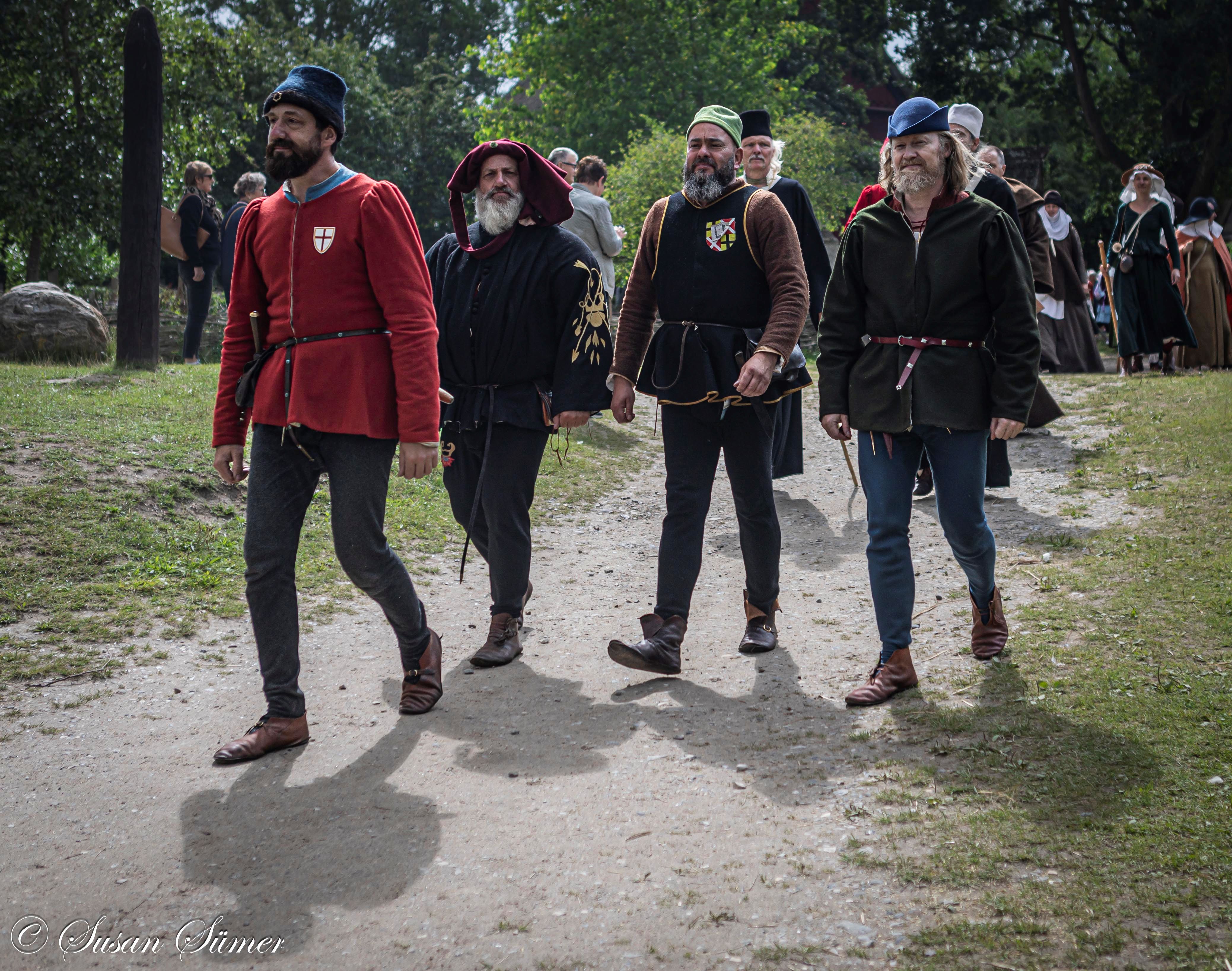 For years we have wanted to stay at the Medieval Center in Nykøbing Falster in Denmark. This year, the chance finally presented itself. In July, we were invited as guests when the reenactment group The Company of Saynt George filled the Medieval Center’s town of Sundkøbing with hustle and bustle for over a week. The English text continues under the photos.